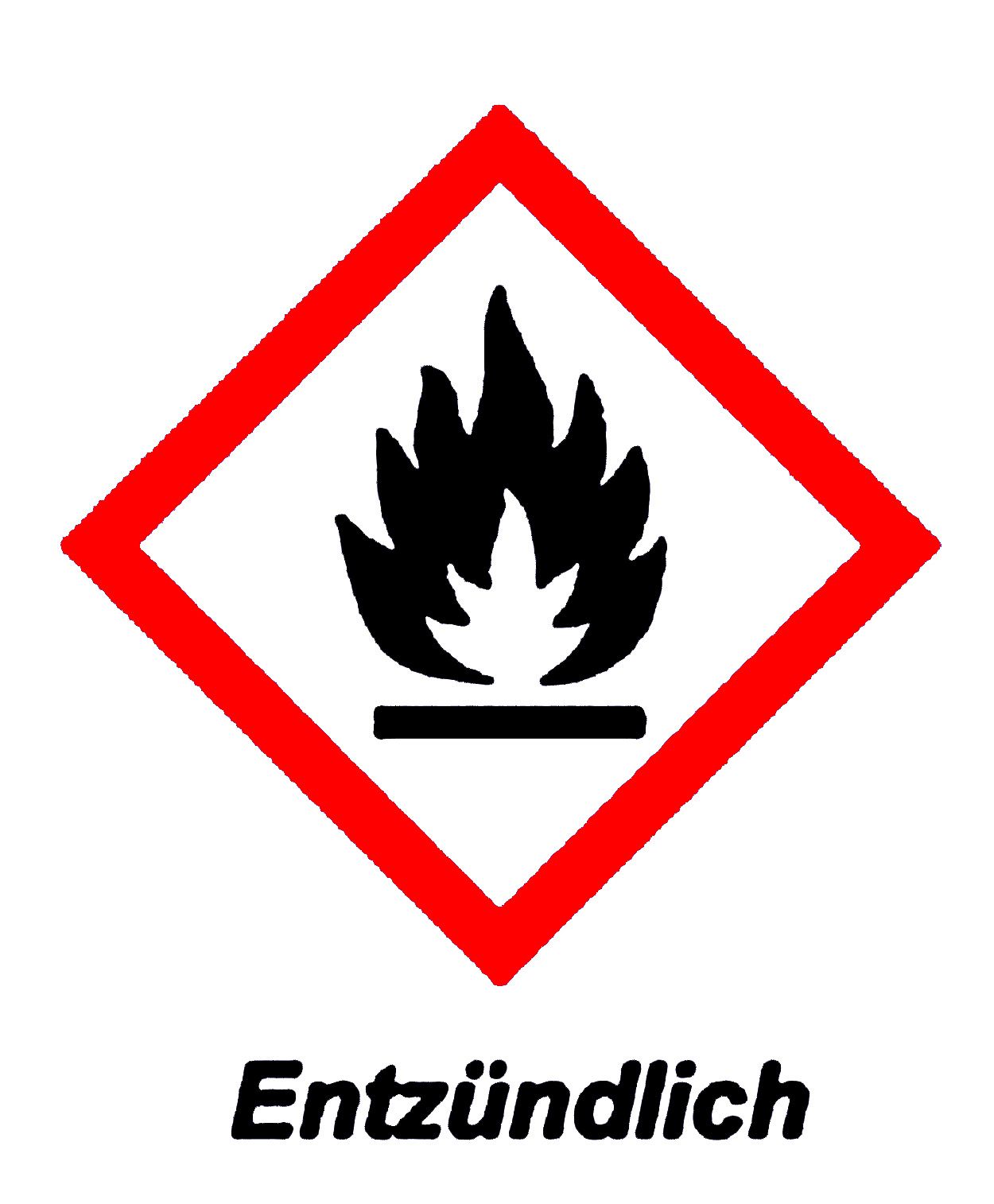 Gefahr - extrem entzündbares Aerosol. Behälter steht unter Druck: Kann bei Erwärmung bersten. Verursacht Hautreizungen. Verursacht schwere Augenreizung. Kann Schläfrigkeit und Benommenheit verursachen. Gifitg für Wasserorganismen mit langfristiger Wirkung. Darf nicht in die Hände von Kindern gelangen. Von Hitze, heissen Oberflächen, Funken, offenen Flammen und anderen Zündquellen fernhalten. Nicht rauchen. Nicht gegen offene Flamme oder andere Zündquelle sprühen. Nicht durchstechen oder verbrennen, auch nicht nach Gebrauch. Nur im Freien oder in gut belüfteten Räumen verwenden. Vor Sonnenbestrahlung schützen. Nicht Temperaturen über 50°C/122°F aussetzen. Gefahrbestimmende Komponenten zur Etikettierung: Naphta (Erdöl), hydrodesulfuriert leichte, dearomatisiert.