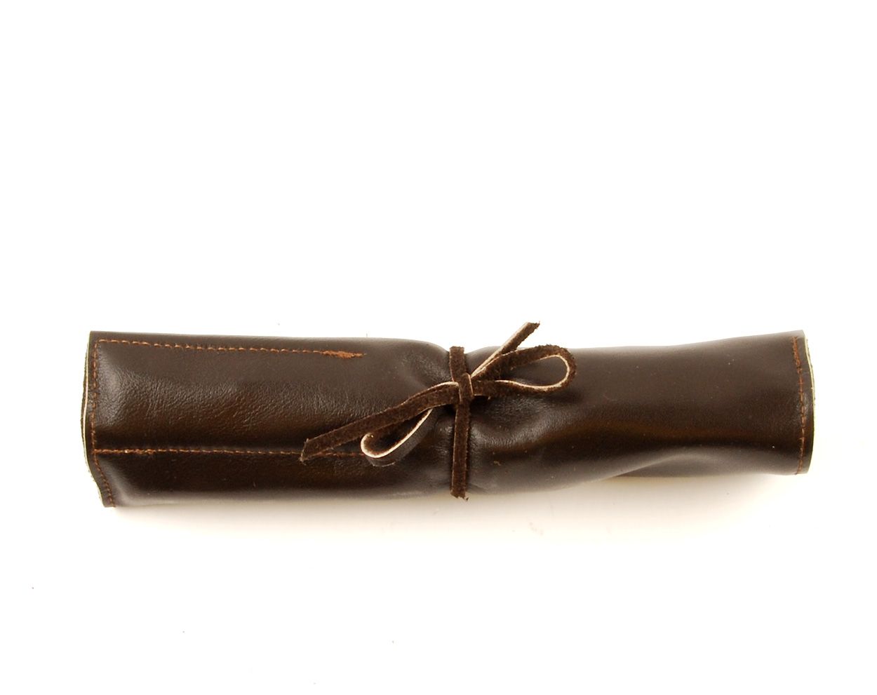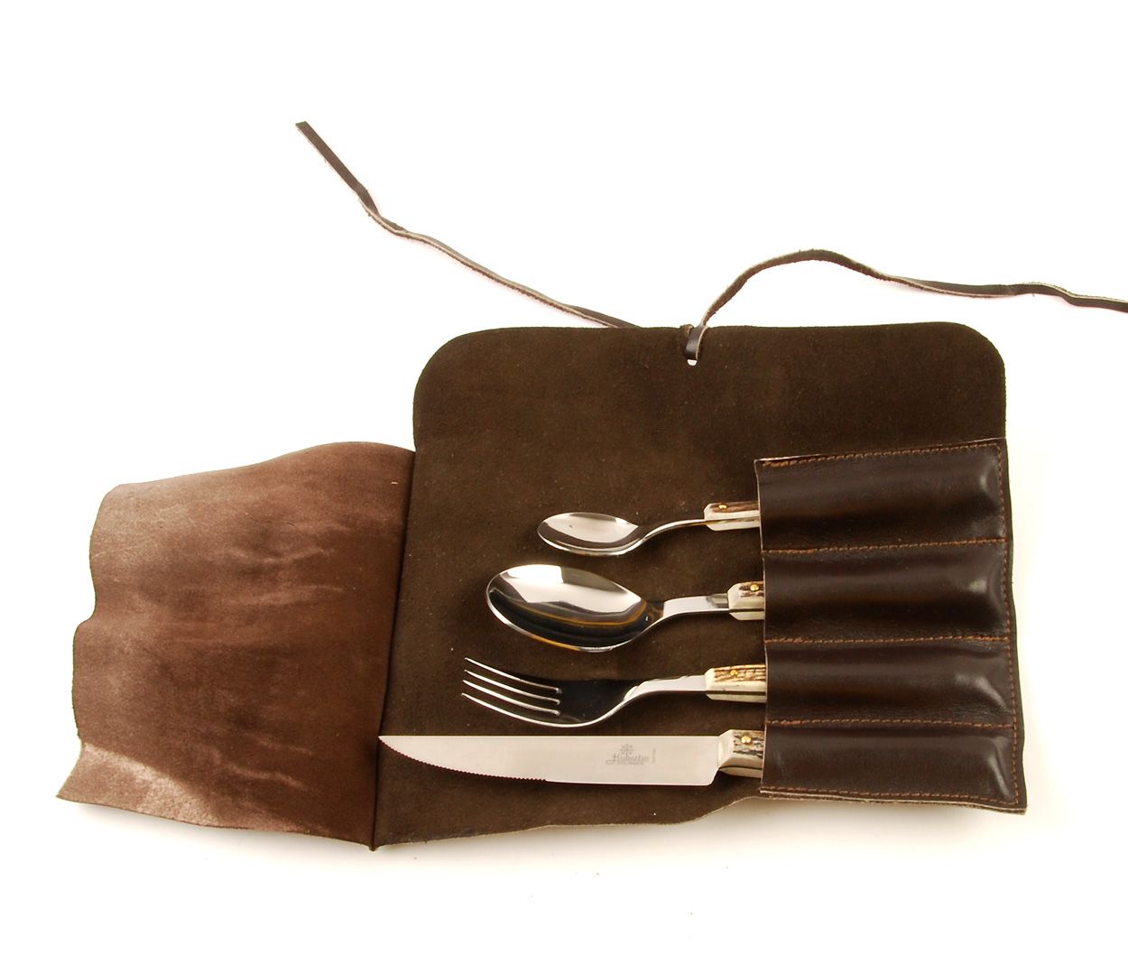 Gediegenes und praktisches Aserbesteck in Leder gewickelt