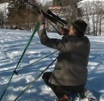Zielen mit 4 Beinen im Gelände - ergibt enorme Stabilität der Waffe für das präzise Schiessen