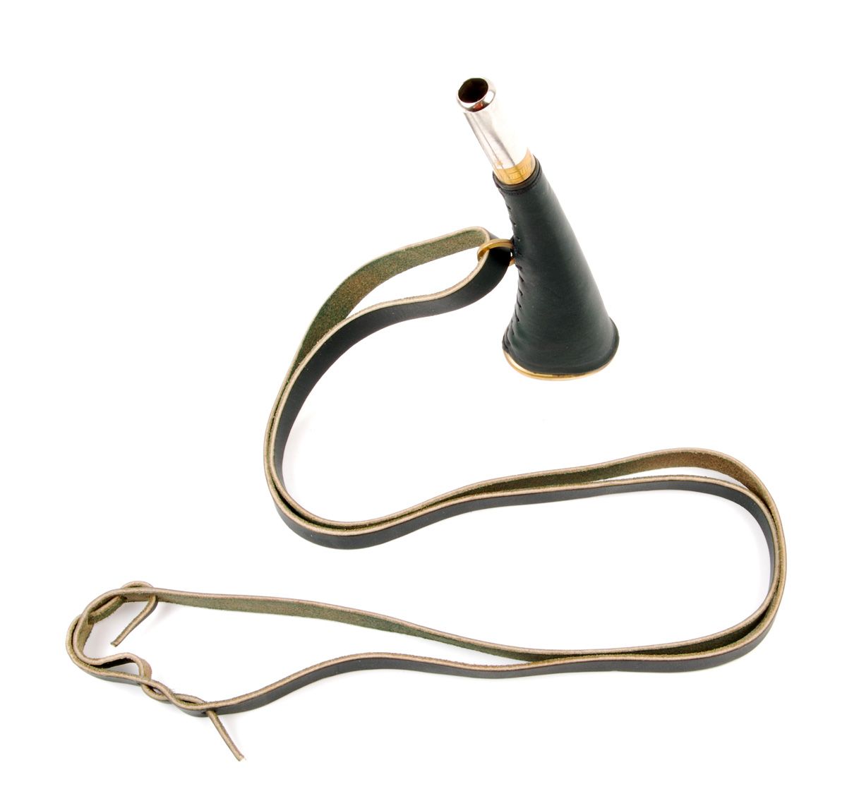Das kleine, belederte Signalhorn für den Jäger mit kräftigem Ton passt in jede Jackentasche; kann mit Ledertragriemen auch bequem umgehängt werden. Dank der Belederung keine Geräusche. beledert mit Ledertragriemen